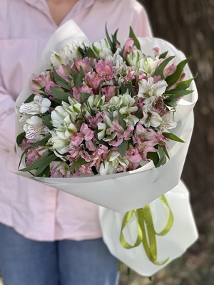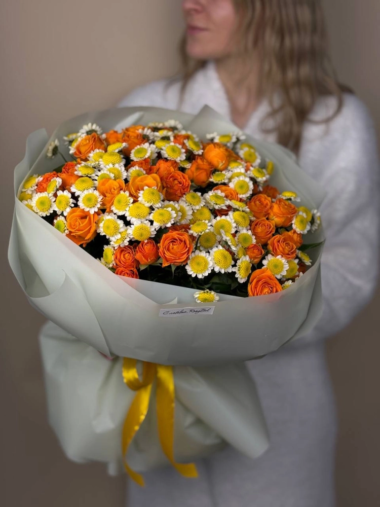 Свежие тюльпаны, розы, гвоздики, хризантемы, лилии, каллы эффектно смотрятся в классических и оригинальных букетах. Мы следим за трендами и представляем в том числе экзотические варианты с подсолнухами, веточками хлопка, леукоспермумом, амарантом. Тех, кому важен оригинальный подход, покорят композиции в шляпной коробке. Впечатляющие букеты из 101 или даже 151 розы – для нас не проблема.Дополнить букет можно открыткой или воздушными шарами.